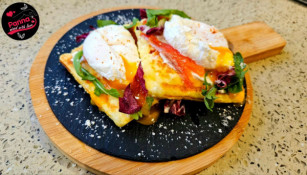 ❤️Далі - фантазуємо. Вершковий сир, червона риба, пашот, зелень.