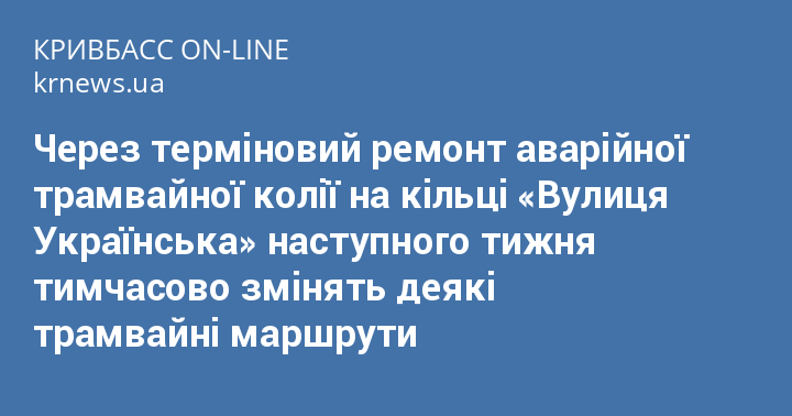 Через терміновий ремонт аварійної трамвайної колії на кільці «Вулиця Українська» наступного тижня тимчасово змінять деякі трамвайні маршрути