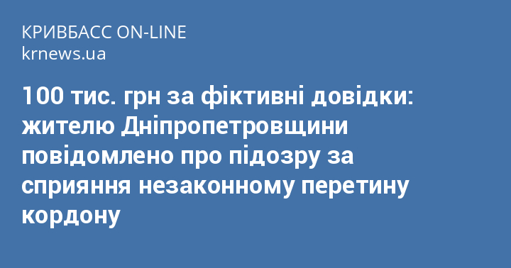100 тис. грн за фіктивні довідки: жителю Дніпропетровщини повідомлено про підозру за сприяння незаконному перетину кордону