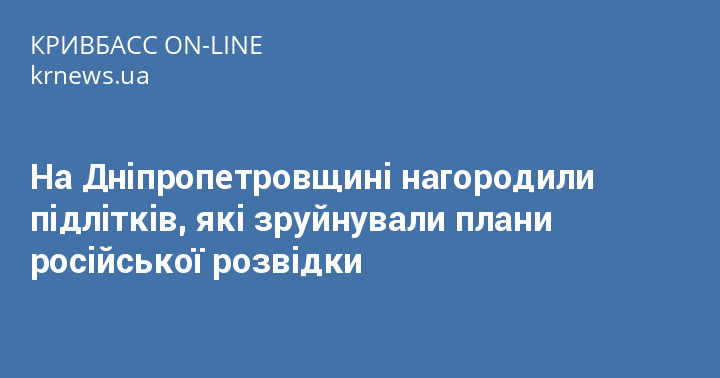 На Дніпропетровщині нагородили підлітків, які зруйнували плани російської розвідки