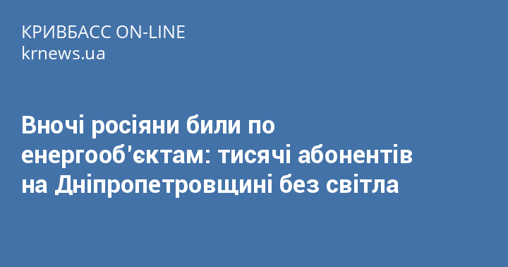Вночі росіяни били по енергооб’єктам: тисячі абонентів на Дніпропетровщині без світла