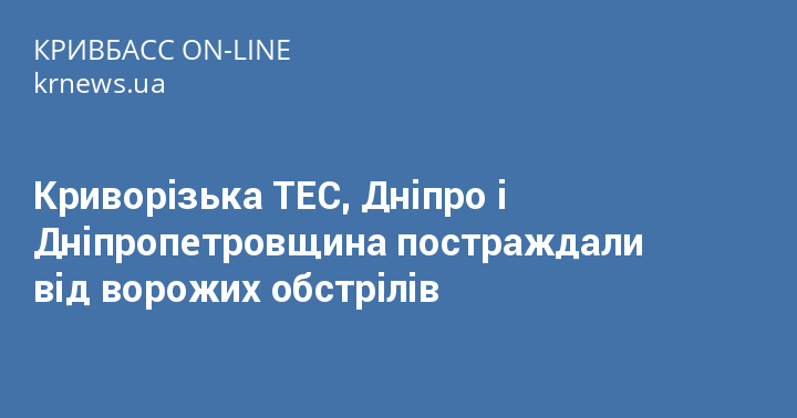 Криворізька ТЕС, Дніпро і Дніпропетровщина постраждали від ворожих обстрілів