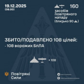 Станом на 08:00 19 грудня, протиповітряною обороною було збито або подавлено 108 ворожих БпЛА на півдні та сході країни. Водночас зафіксовано 47 влучань ударних дронів на 23 локаціях.