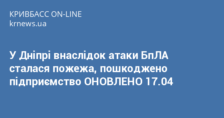 У Дніпрі внаслідок атаки БпЛА сталася пожежа, пошкоджено підприємство ОНОВЛЕНО 17.04