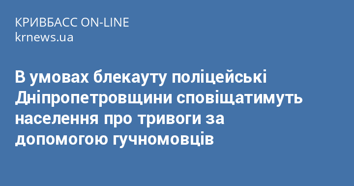 В умовах блекауту поліцейські Дніпропетровщини сповіщатимуть населення про тривоги за допомогою гучномовців