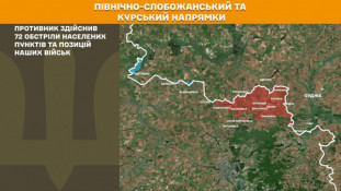 На Північно–Слобожанському і Курському напрямках минулої доби противник здійснив 72 обстріли населених пунктів та позицій наших військ.