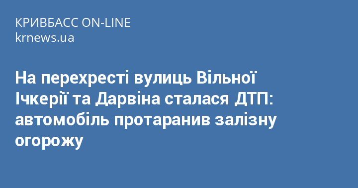 На перехресті вулиць Вільної Ічкерії та Дарвіна сталася ДТП: автомобіль протаранив залізну огорожу