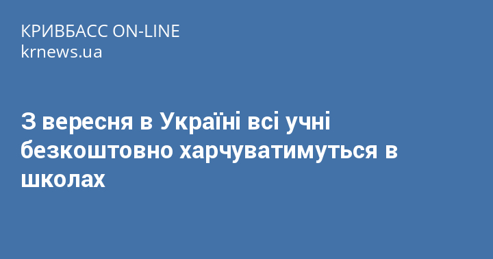З вересня в Україні всі учні безкоштовно харчуватимуться в школах