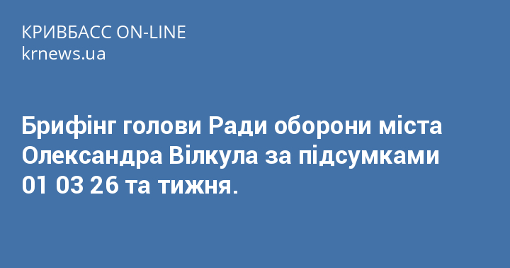 Брифінг голови Ради оборони міста Олександра Вілкула за підсумками 01 03 26 та тижня.