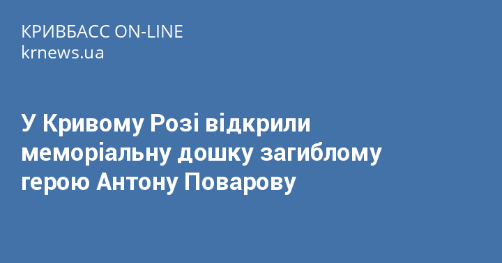 Днями у Криворізькій гімназії №34 відбулося урочисте відкриття меморіальної дошки на честь випускника закладу – Антона Поварова, який загинув у боротьбі за незалежність, суверенітет і територіальну цілісність України