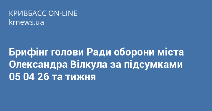 18:55, 5 апр 2026 , ІА "Кривбас Он-лайн", новини Кривий Ріг