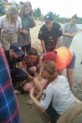 Вот это ментам не повезло. Они пришли на охоту мож кто будет пьяный и поведет себя неадекватно, то можно было бы денег срубить. И полная засада, пришлось вот помогать утопленнику. У ментов день не заладился. Гляньте на них, вид точно как у зэков, все в татуировках.